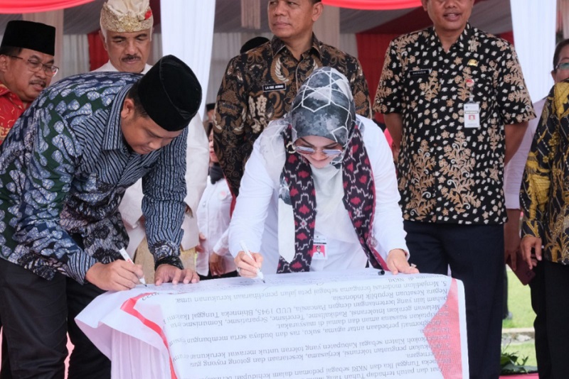 Selanjutnya pemberian penghargaan oleh Ketua Umum Asosiasi FKUB Indonesia kepada Bupati Klaten dalam piagam penghargaan sebagai Bupati yang paling peduli dan inovatif dalam membangun kerukunan dan merawat NKRI. Dilanjutkan dengan penandatanganan deklarasi damai dan toleransi antar umat beragama oleh Wakil Kepala BPIP, Staf Ahli Kementerian Dalam Negeri, Ketua Umum Asosiasi FKUB Indonesia, Kemenag Republik Indonesia, serta Bupati Klaten.